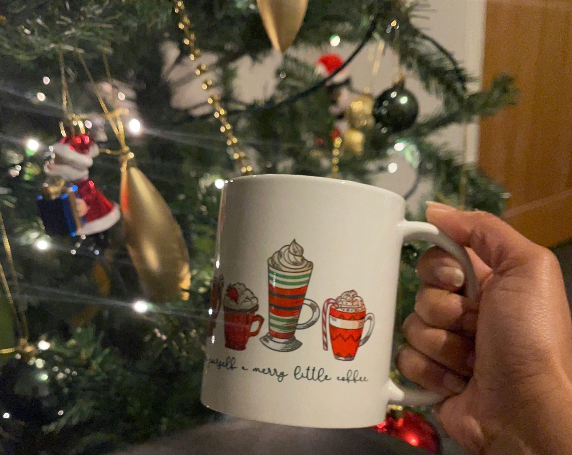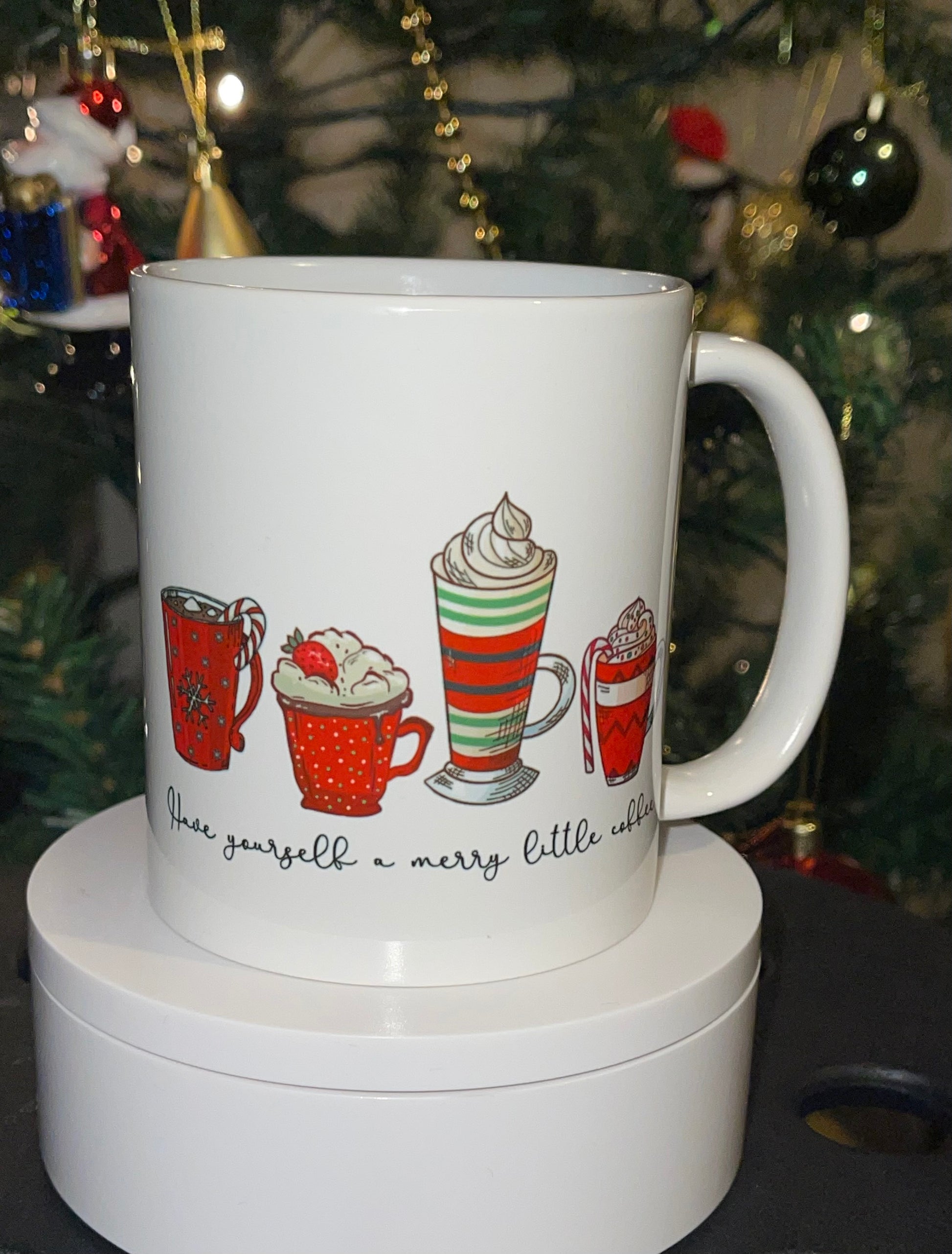 Cute ceramic Christmas mug, “Have yourself a merry little coffee” mug