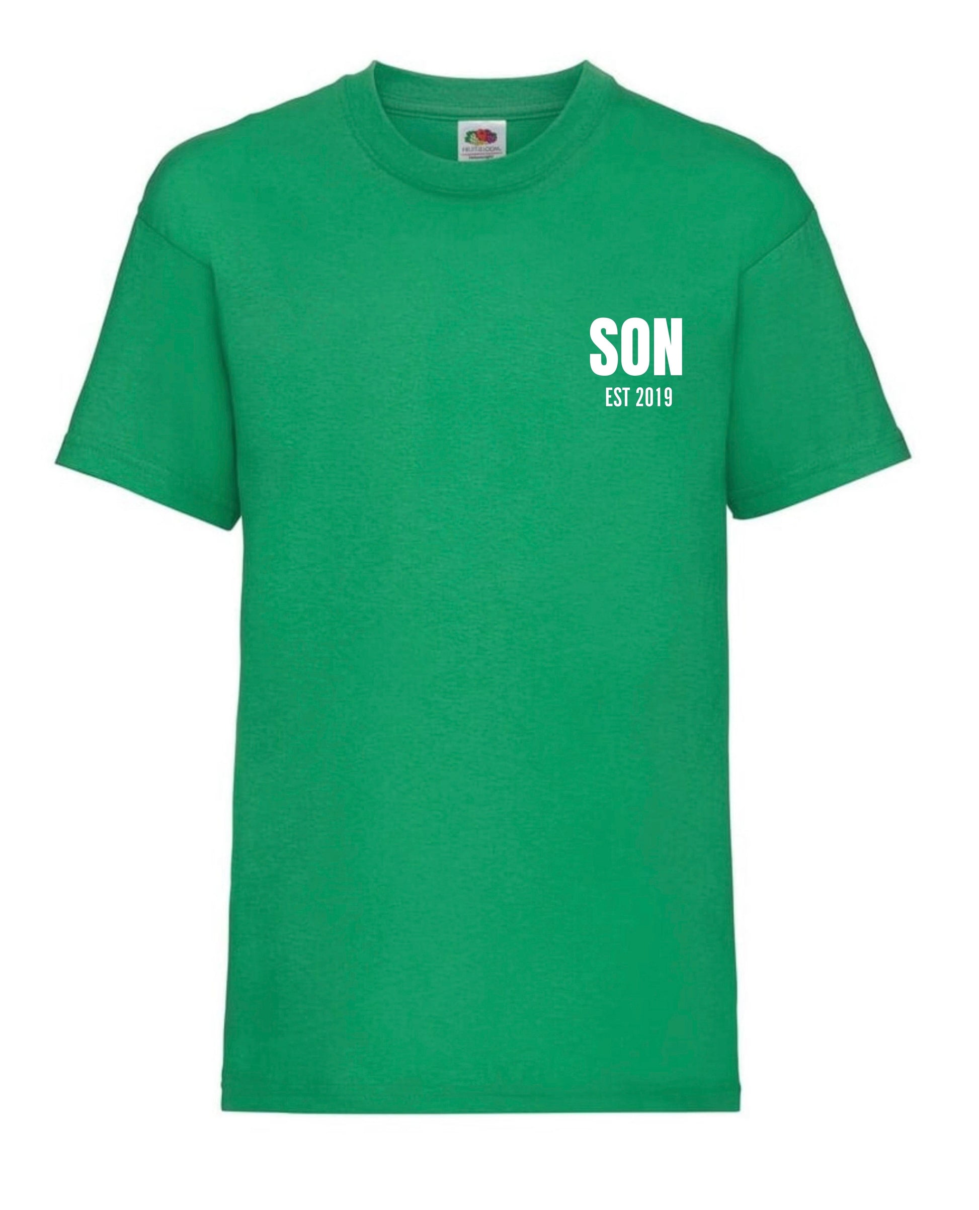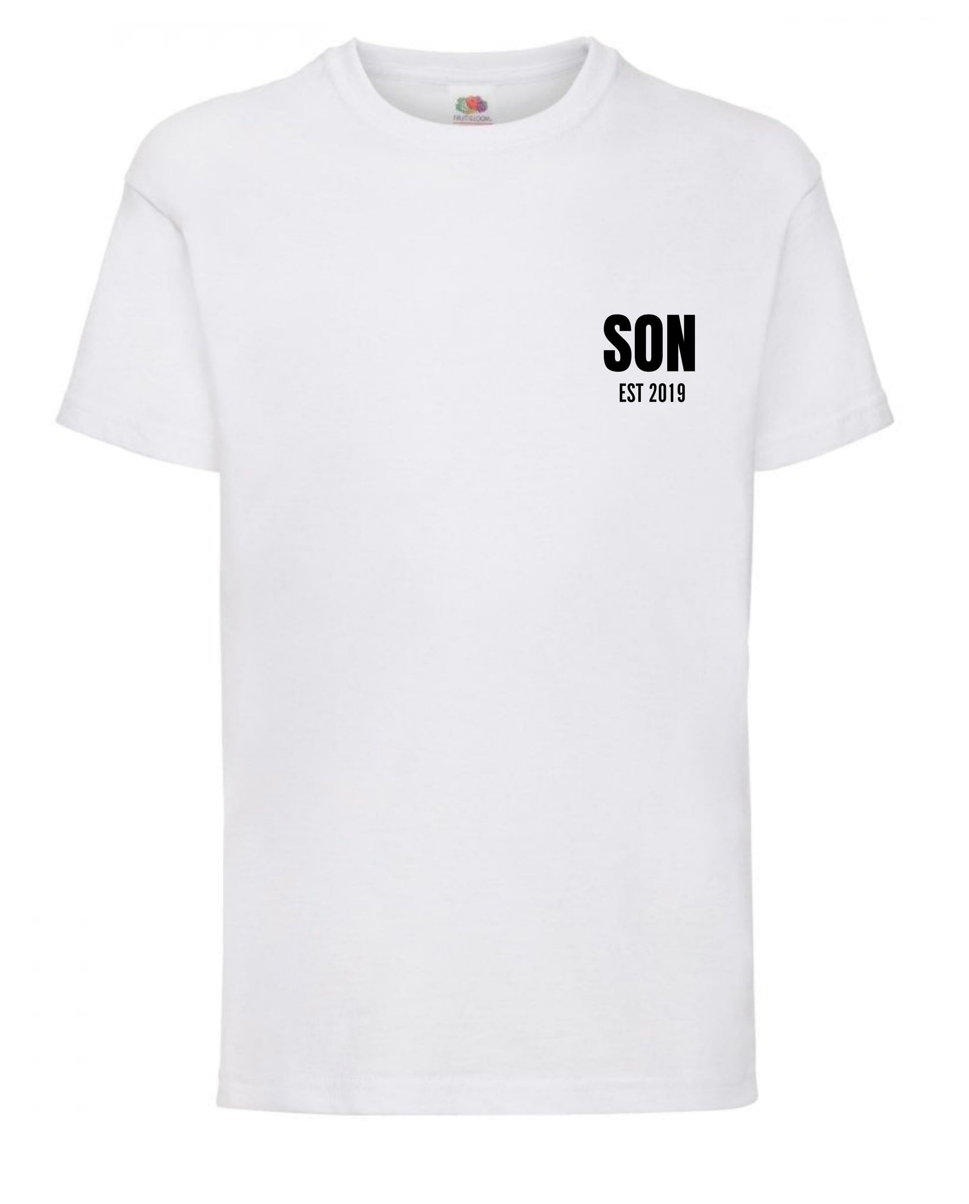 Cute personalised “SON” t-shirts for 3 to 15 years old in 10 colours