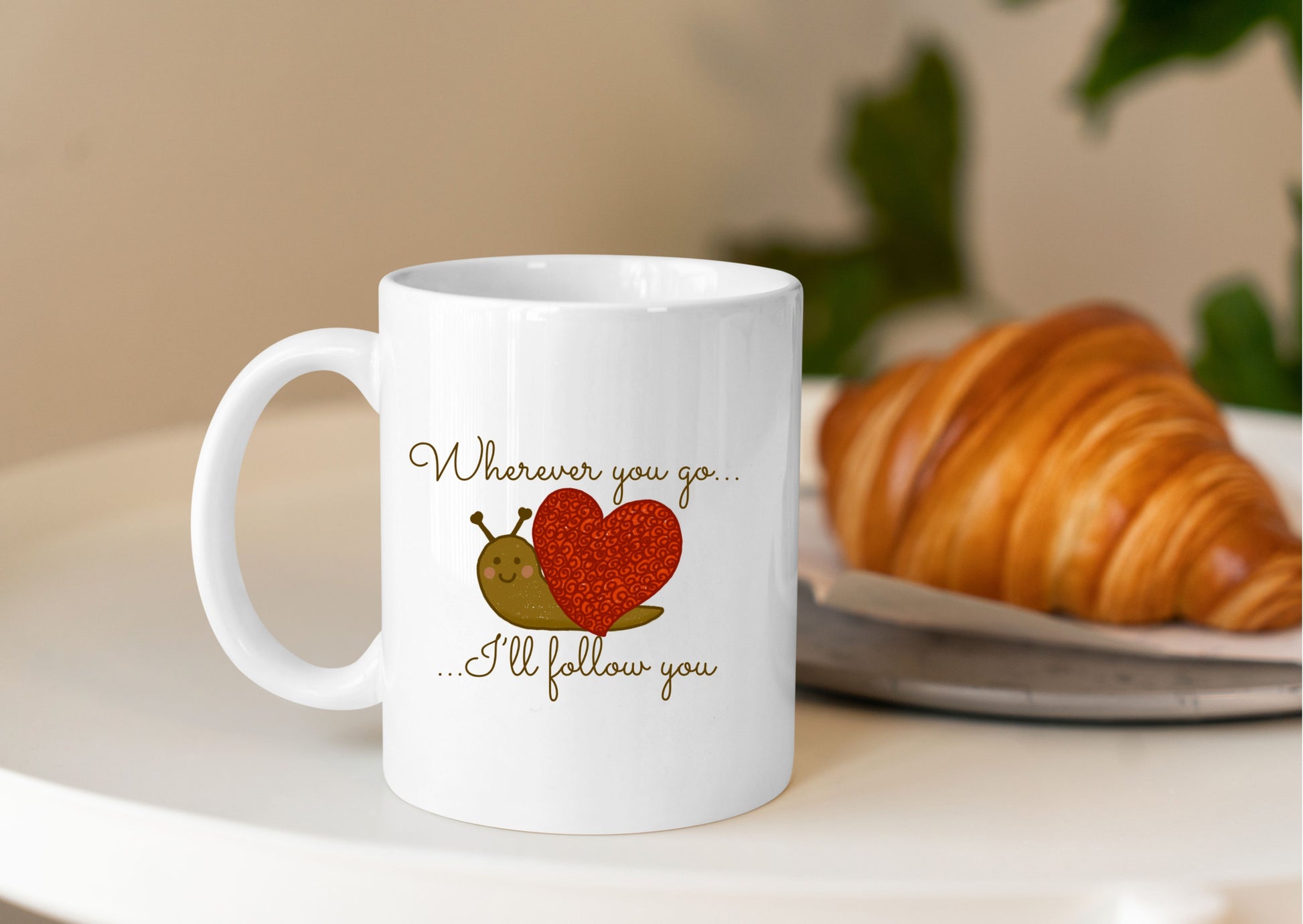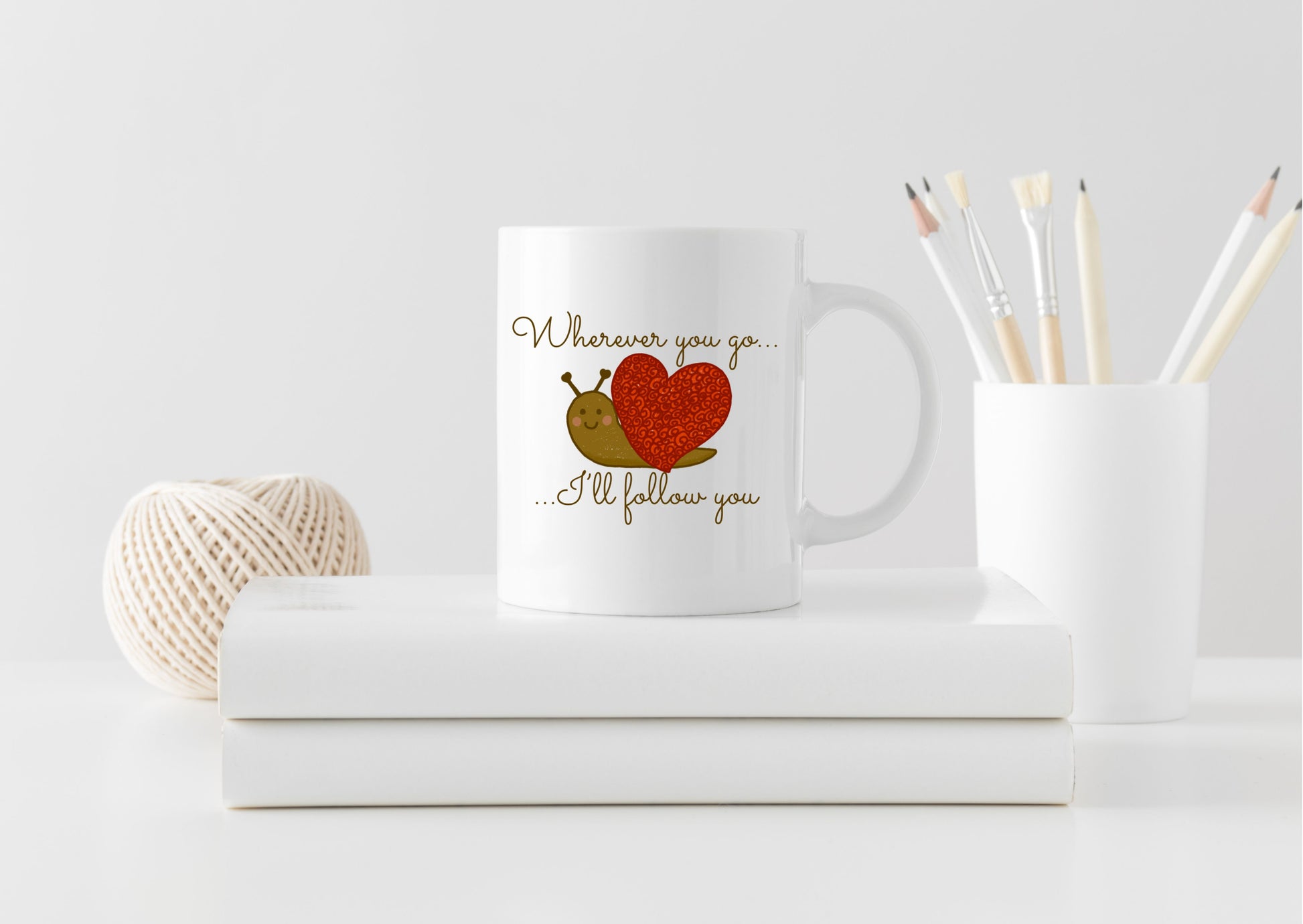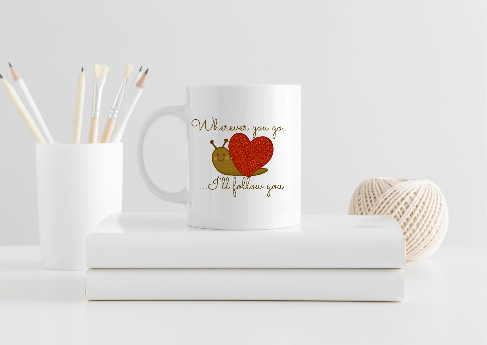 Cute snail Valentine’s Day mug/ “wherever you go I’ll follow you”