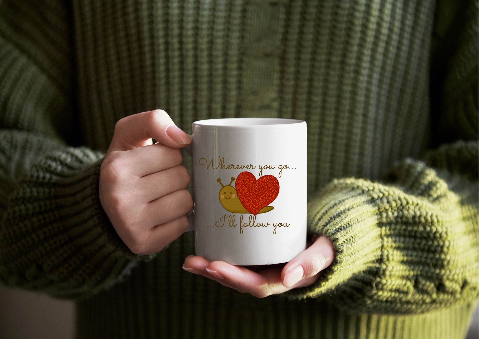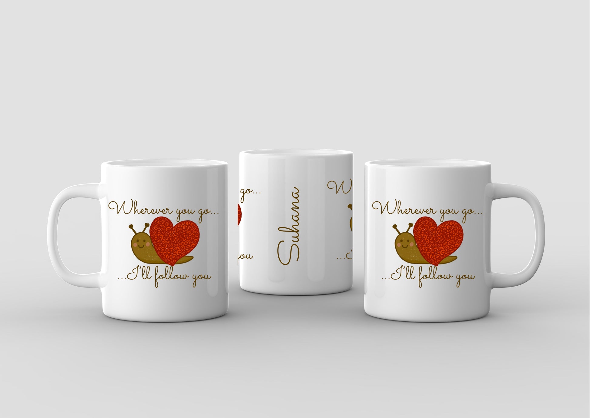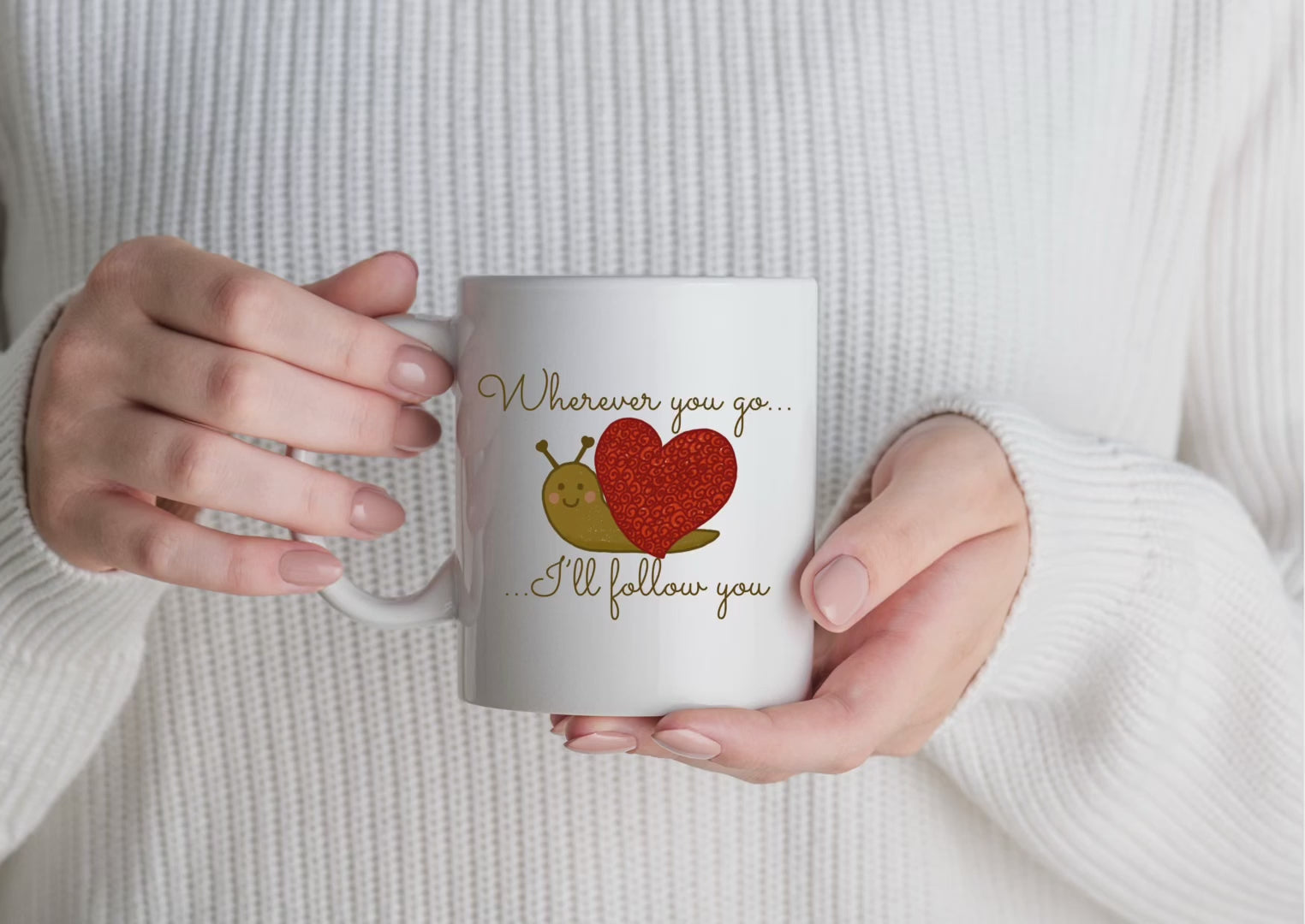 Cute snail Valentine’s Day mug/ “wherever you go I’ll follow you”