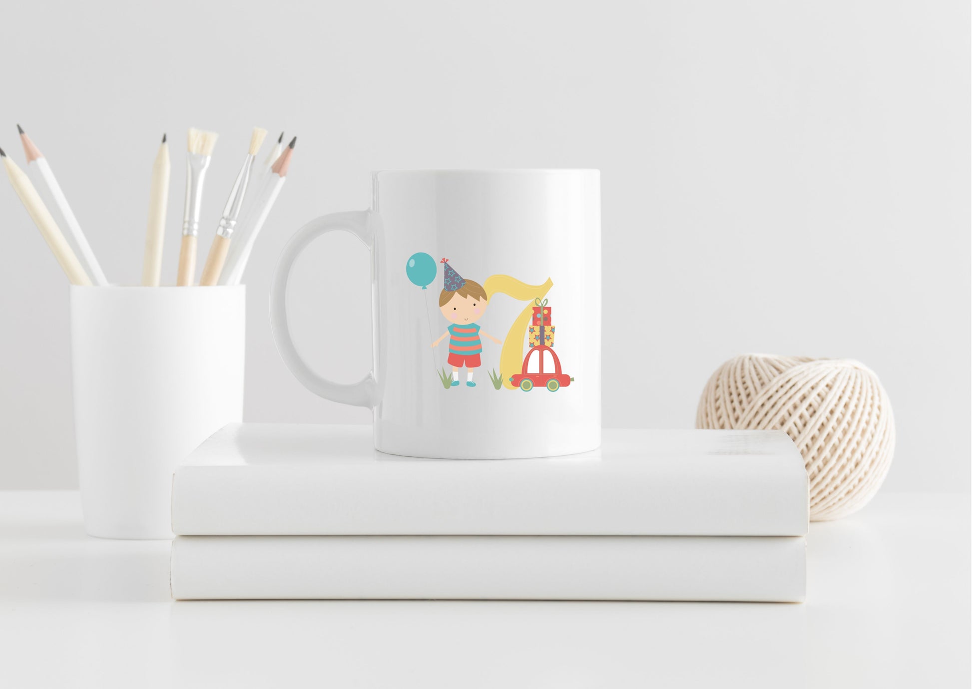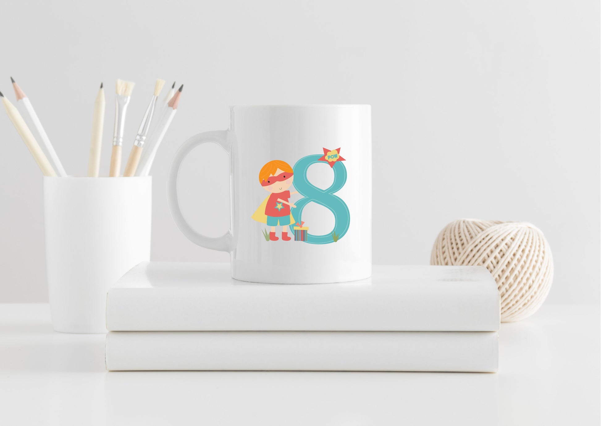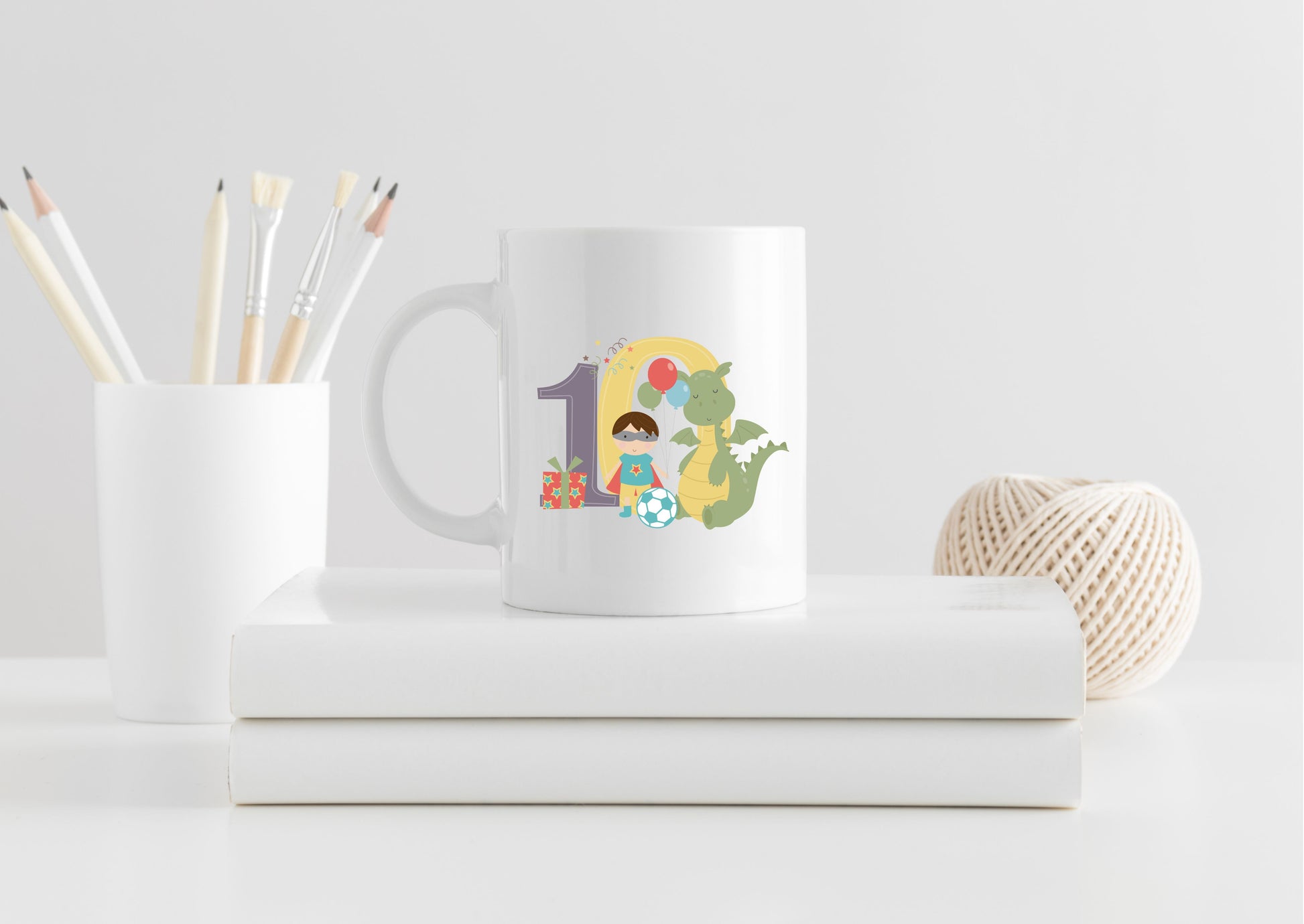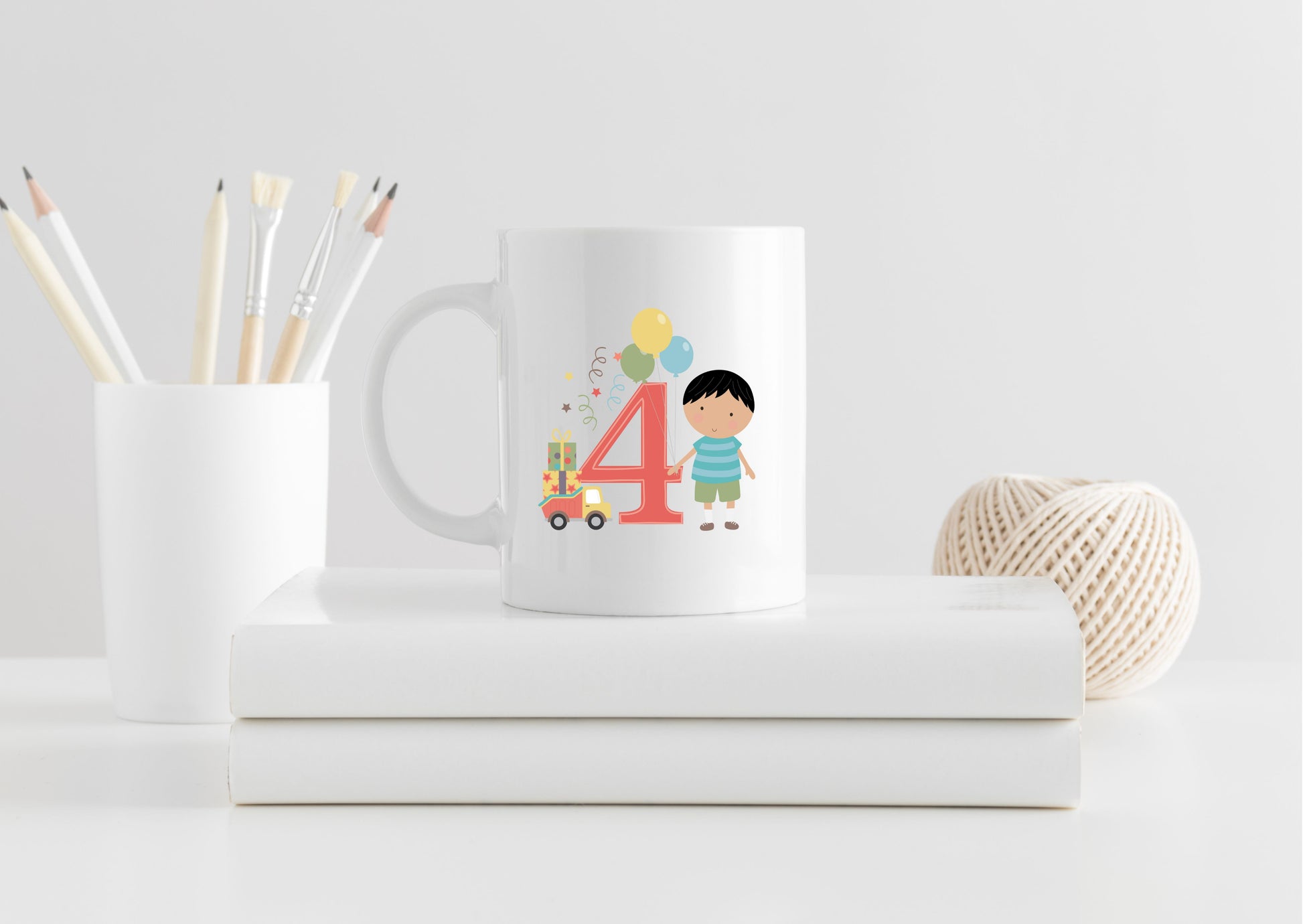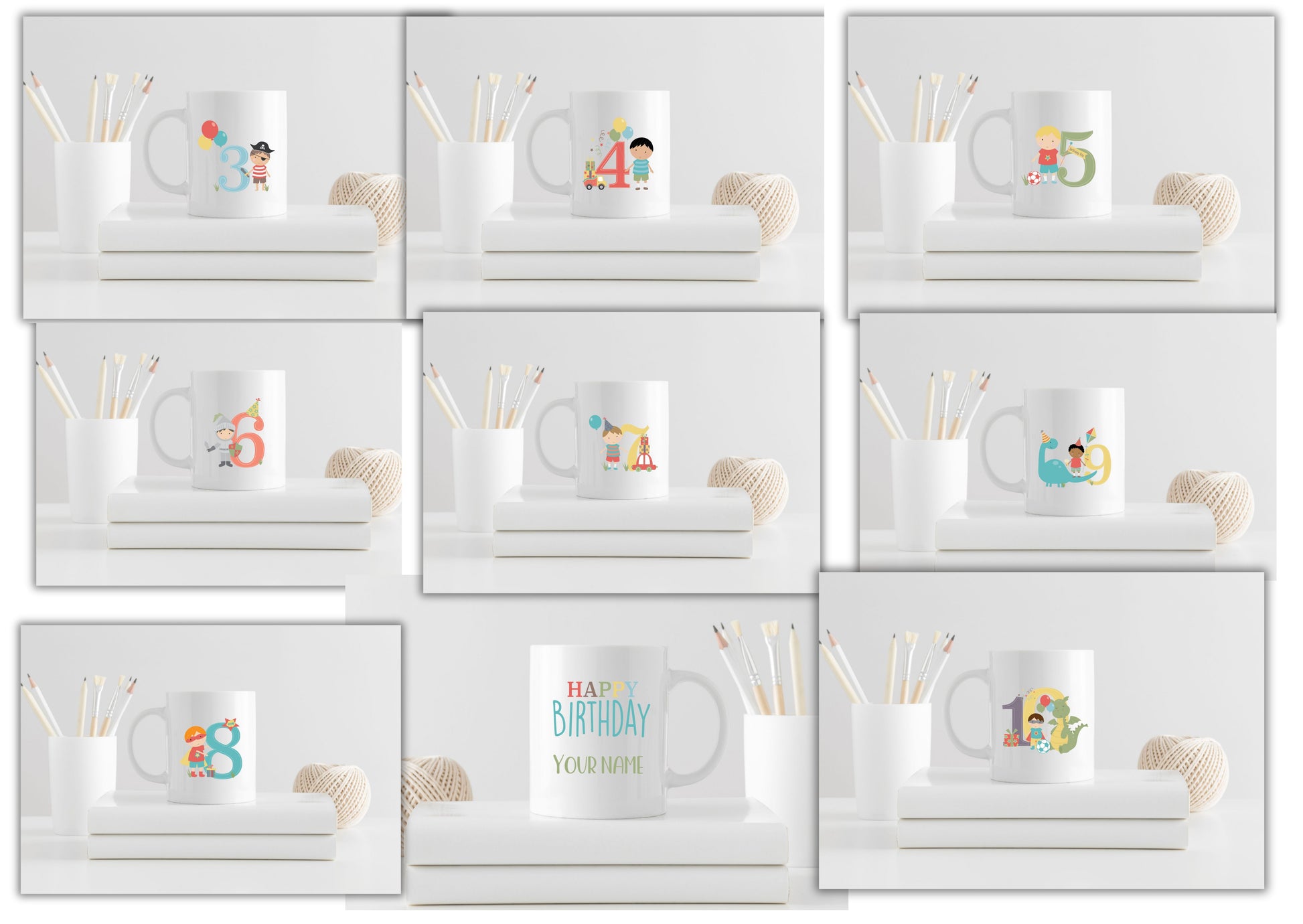 We are offering this cute adorable personalised birthday mug for your little boy aged 3 to 10 years old. Our mugs are 11oz ceramic mugs. You can choose the images according to the age and add his name on the mug to personalise the it. The mug will come with a gift box with no extra cost as a complement.