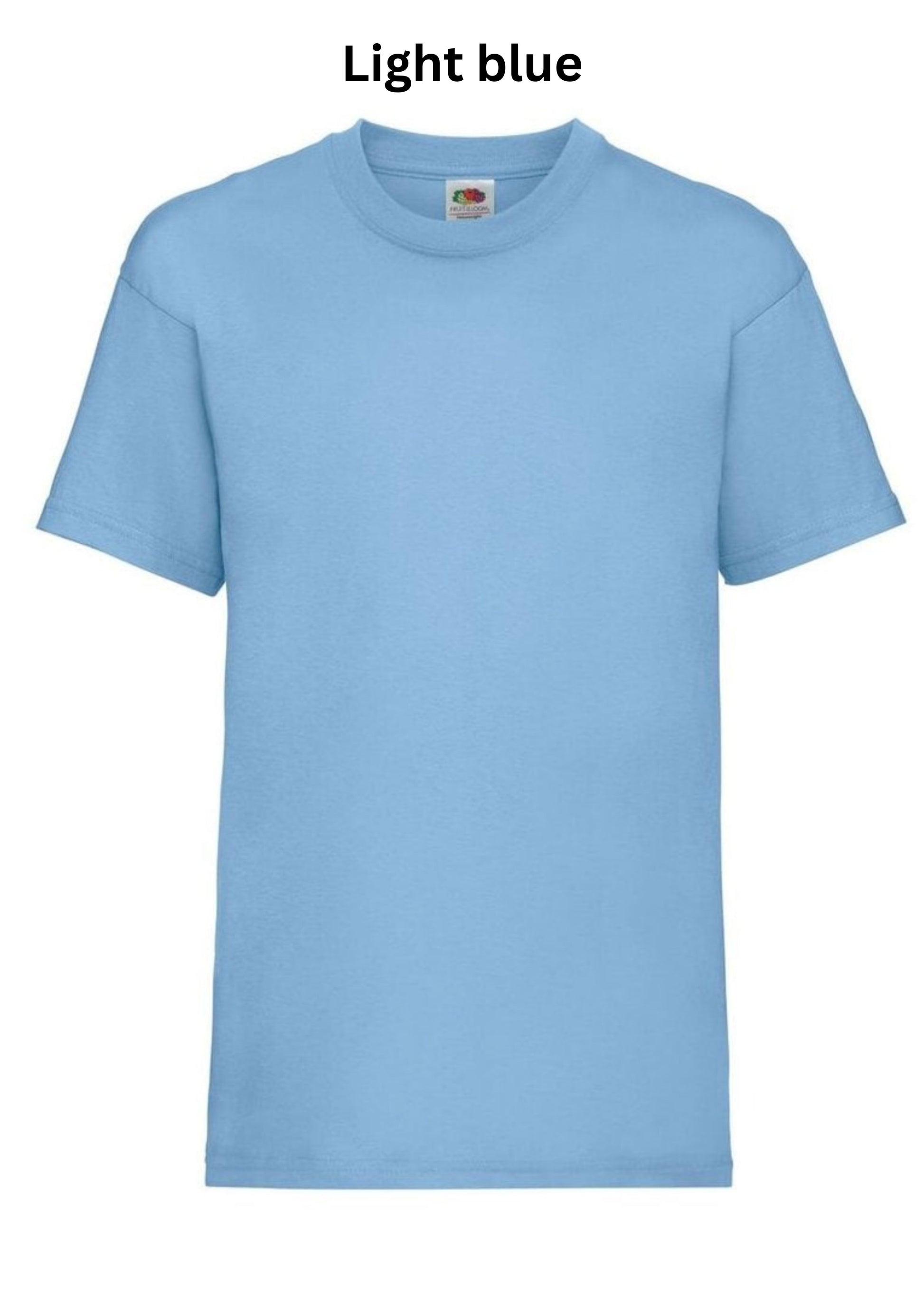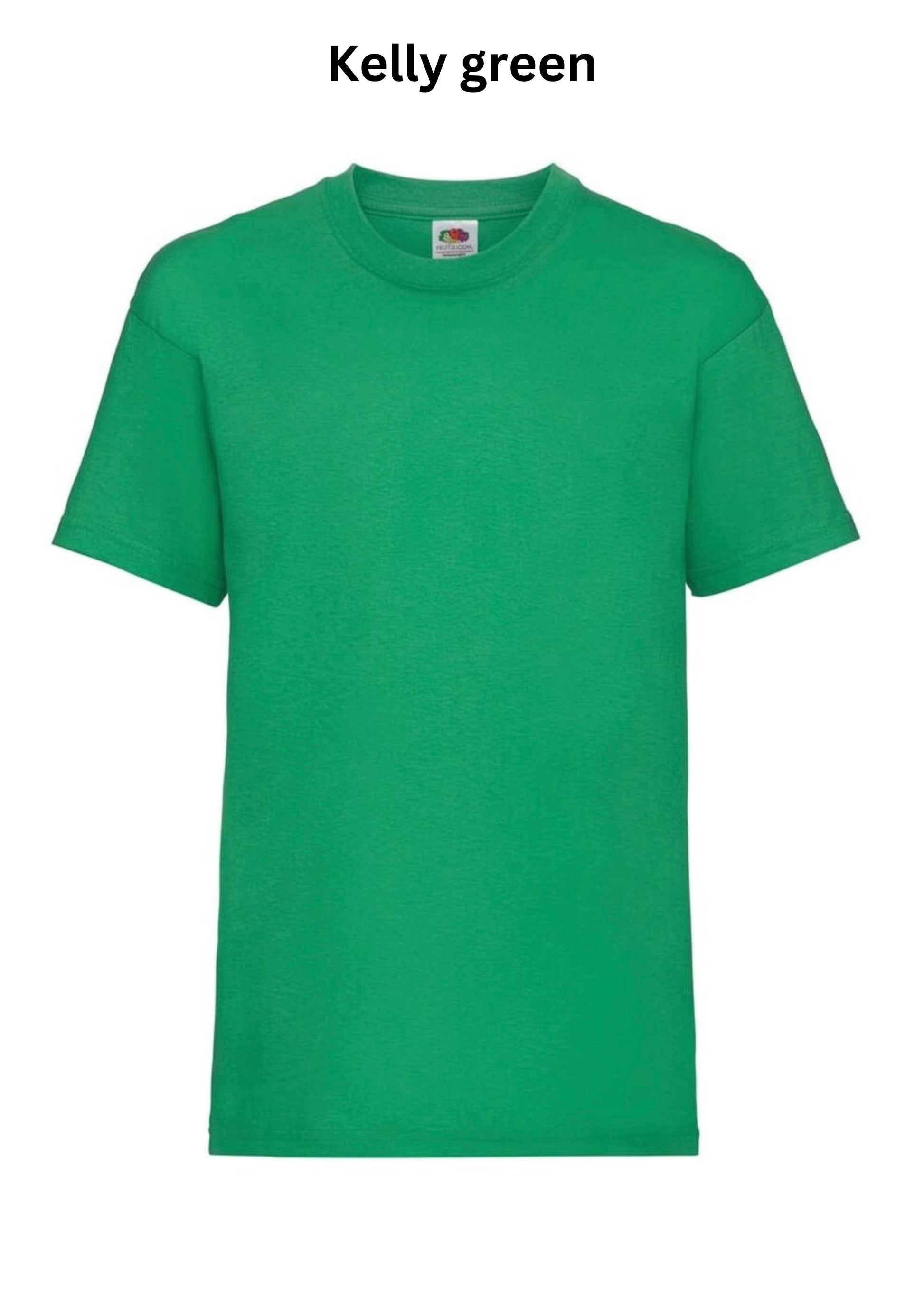 Personalised kids t-shirts aged 3 to 15 years in 12 colours